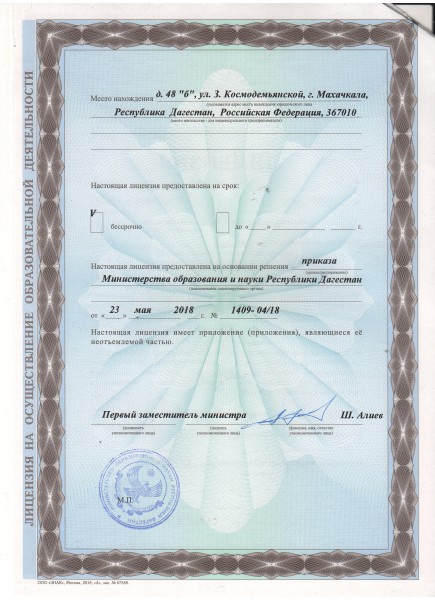 | Адрес местонахождения образовательной организации* | 367030, Республика Дагестан, г. Махачкала, ул. З. Космодемьянской ,48 |